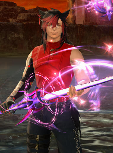 Homeless, Orphaned.. lost without guidence.. this Miqo'te grew up without a family living under a bridge in Gridania. Many days became months.. months became years.. watching other kids grow up with families.. seemingly happy and carefree. In Zekiel's time, he learned how to cast spells while watching adventurers.. learning how to control Aether.. and picking up swordfighting skills, learning and improving upon his skills for both swordfighting and casting. Then one day, he read about Redmagic.. he became infatuated, studying any book he could get his hands on, studying White and Black magic intensely.. it was his calling.. or.. was it just a way for him to dull his emptiness.. upon finishing his studies and becoming a fully fledged Redmage, he declared himself 'The BEST Redmage' to become more appealing to others... Turns out bragging didnt make you too appealing.. but, Zekiel did meet someone.. they became best friends.. and that lead to more friends.. and that lead to having a family.. his friends were his new family.. and he vowed to stay alive for them.. and protect them with all of his life."I promise that I will keep you all alive.. no matter what... but I will always stay alive for all of you. I shall live, and die by this."